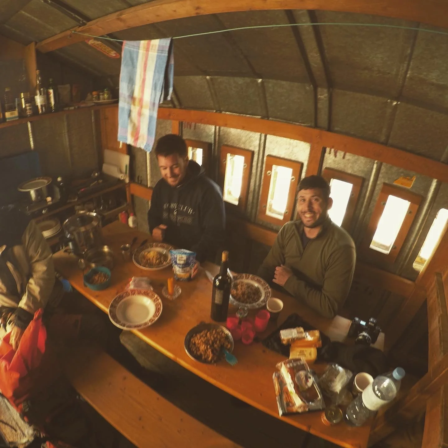 The hut is quite basic and has space for six people. You can explore the nearby ridgeline and even cross over into Italy — the hut is just a few hundred meters from the border. There’s some gas for cooking, but I usually bring my own along with a Jetboil, just in case.