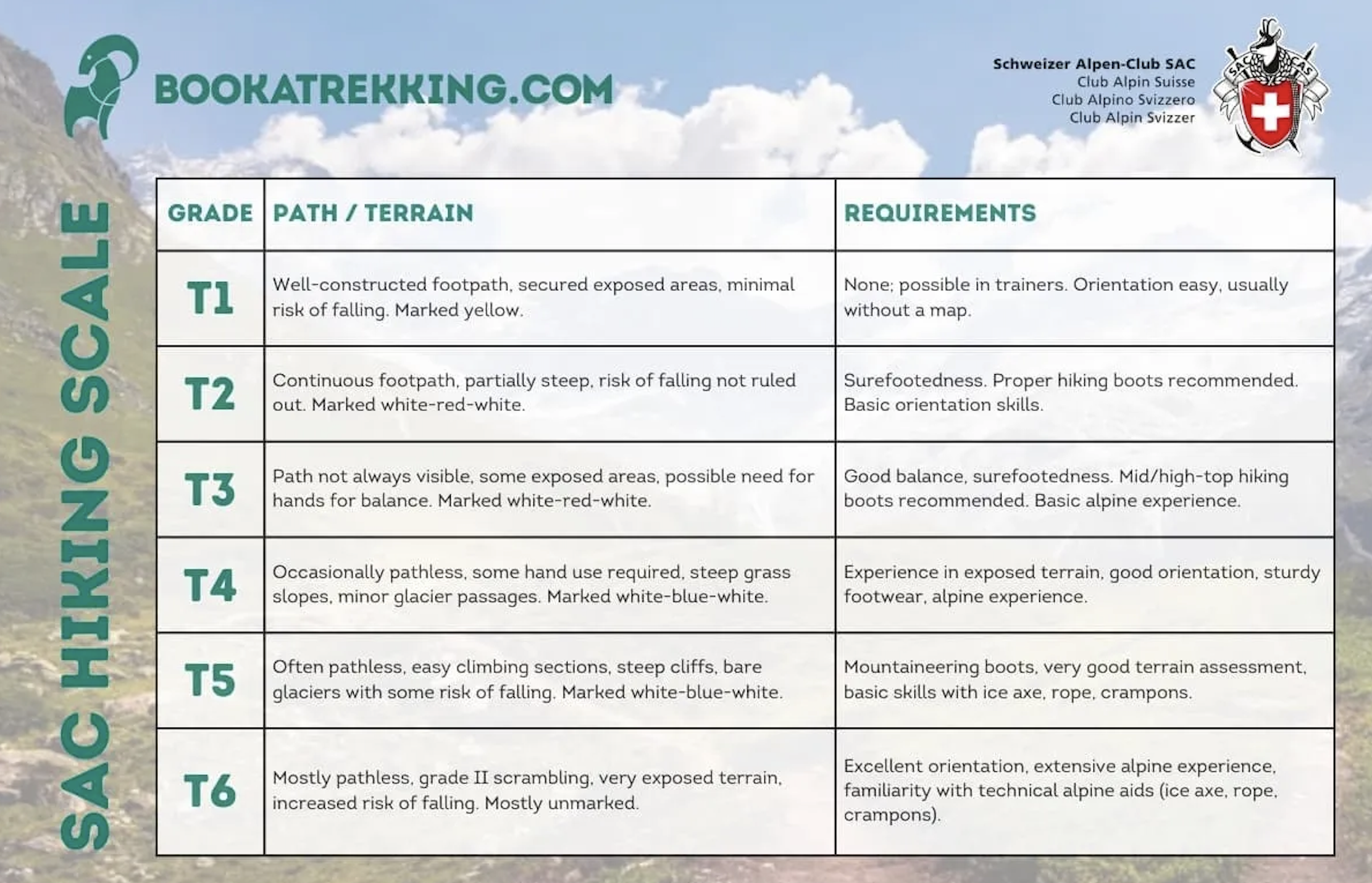 Swiss hikes are graded based on difficulty, from T1 to T6. The hikes I’ll share are usually between T3 and T4 — what does that mean?