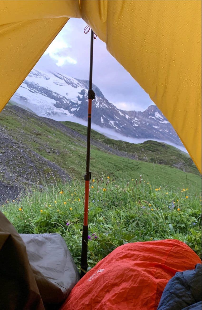 Day 1 — Grindelwald ➜ wild‑camp spot About eight hours on the trail with full packs. We pitched near the path, cooked pasta and were asleep in minutes under a clear sky.